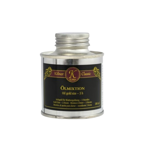 Kölner Classic Oil Size (also known as Oil Mixtion) is a traditional oil-based adhesive suited for use with gold and other metal leaf and is suitable for both interior and exterior application. Kölner Classic Oil Size - 3hr will be ready to gild in roughly three hours after application, although factors such as heat and humidity may lengthen or shorten this.