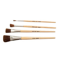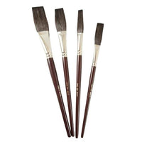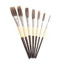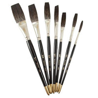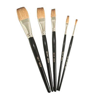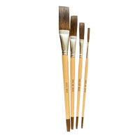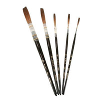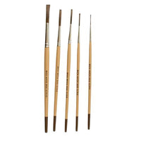 Mack signwriting brushes are imported from Mack themselves in the US and are extremely popular within the signwriting community. Mack Signwriting brushes are available in mainly sable hair or synthetic hair. No animals are raised or trapped for the sole purpose of making a brush. Natural animal hair may be used in its pure state or mixed with other types of hair to accomplish a particular mixture for price, and or, performance. Natural hair will hold a tremendous amount of paint, because it has microscopic scales along the shaft of the hair. Quality and price of natural hair is determined by the grade of animal, and by supply and demand. Generally speaking, longer hair is harder to find and more expensive than the shorter lengths. Synthetics are man-made of either nylon or polyester. They may come tipped, tapered, flagged, abraded or even etched to increase the brushes' ability to carry colour. The man-made filaments may be dyed and baked to make them soft and more absorbent.
